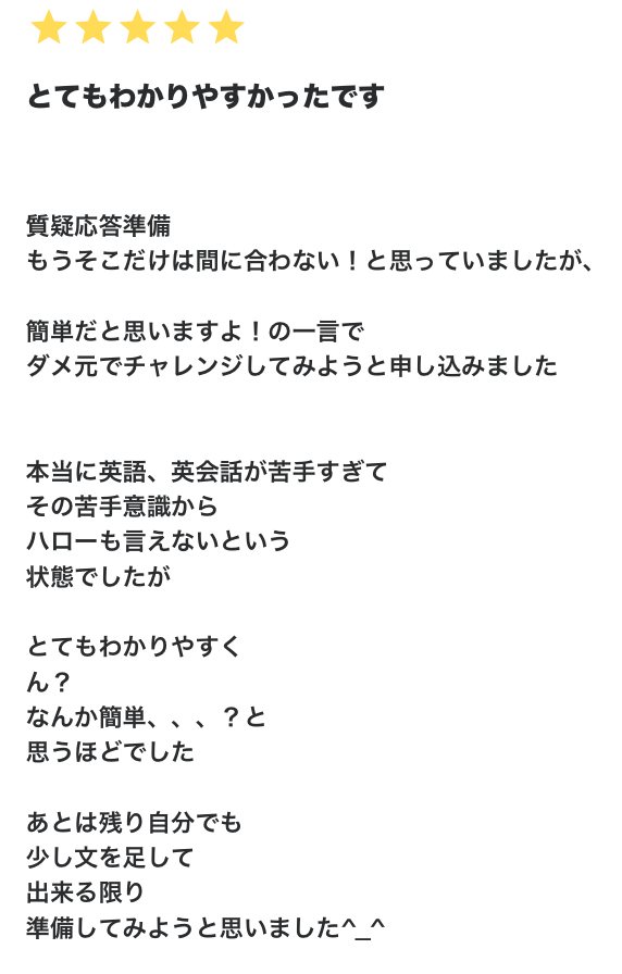 ?‍?女性|英会話(英語スピーチ)講座|英語の苦手意識が強すぎてダメ元で参加→終わる頃には英語が簡単?と思えるまでに