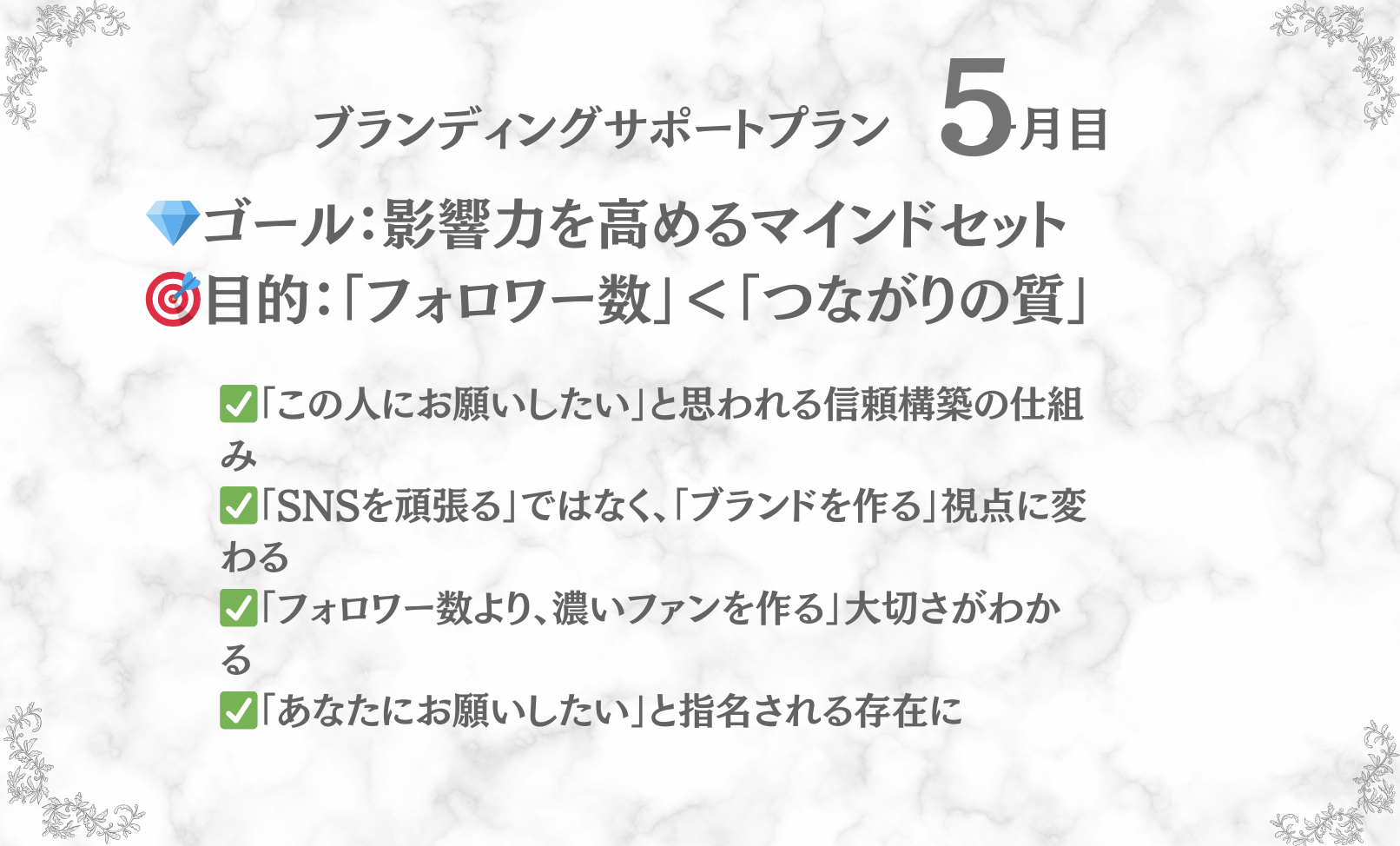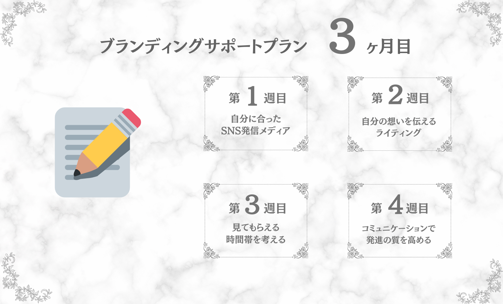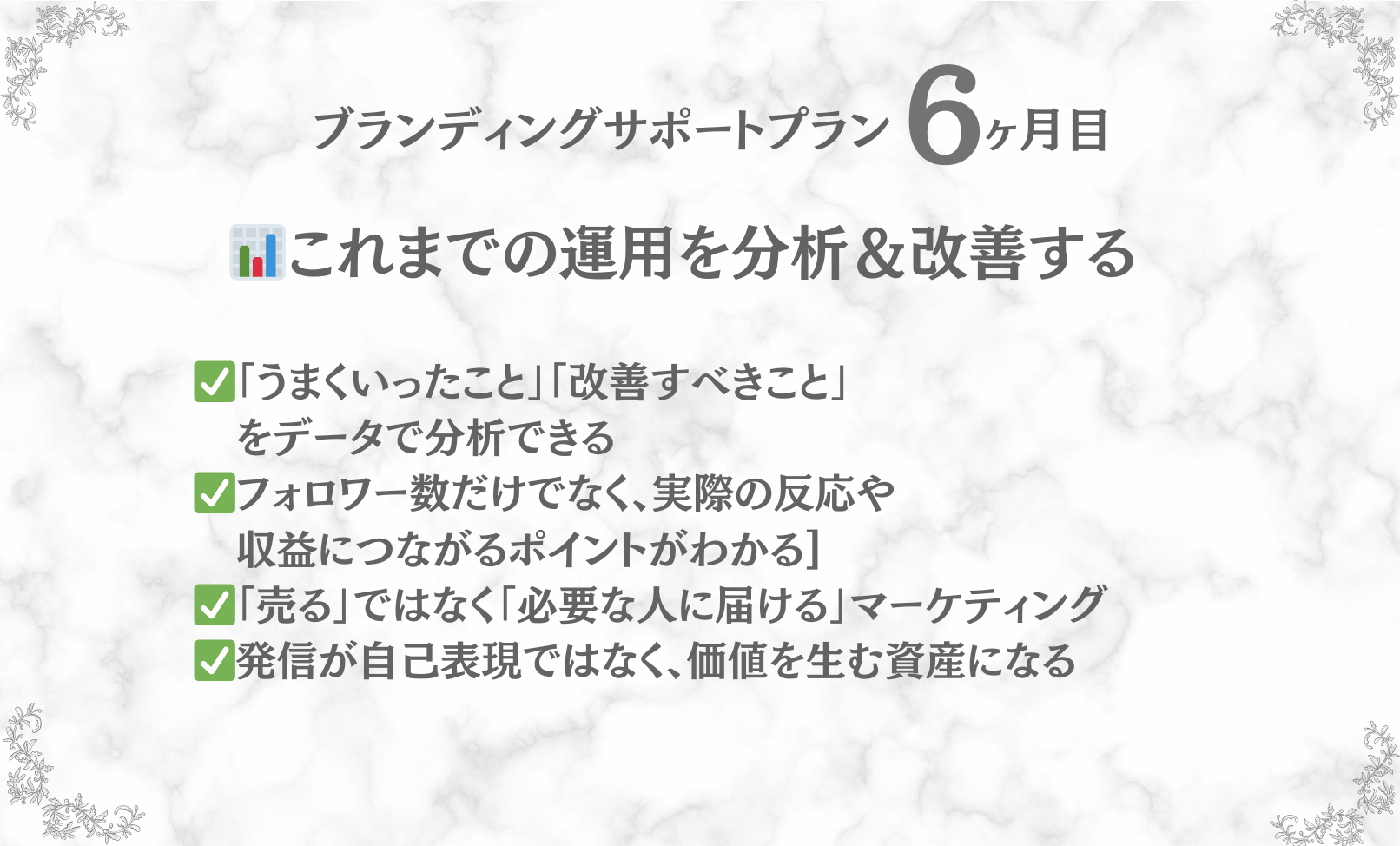 こちらのプランは基本的に6ヶ月のプランとはなりますが、その人の予算や期間をしっかりヒアリングして、サポートしていきますので、ご安心いただけたらと思います。