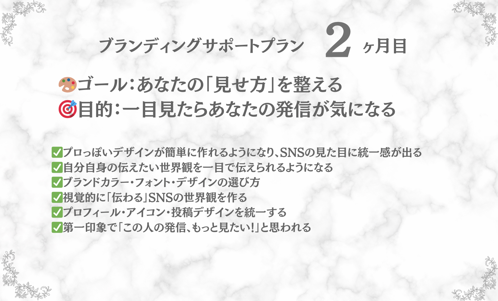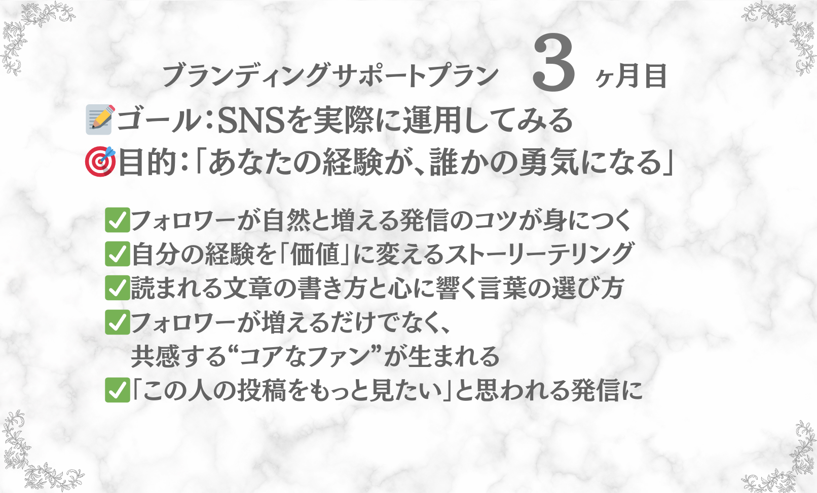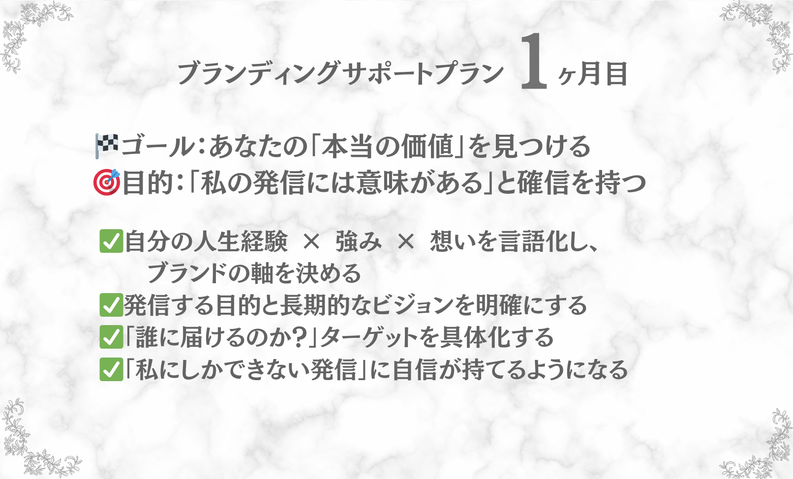 こちらのプランは基本的に6ヶ月のプランとはなりますが、その人の予算や期間をしっかりヒアリングして、サポートしていきますので、ご安心いただけたらと思います。