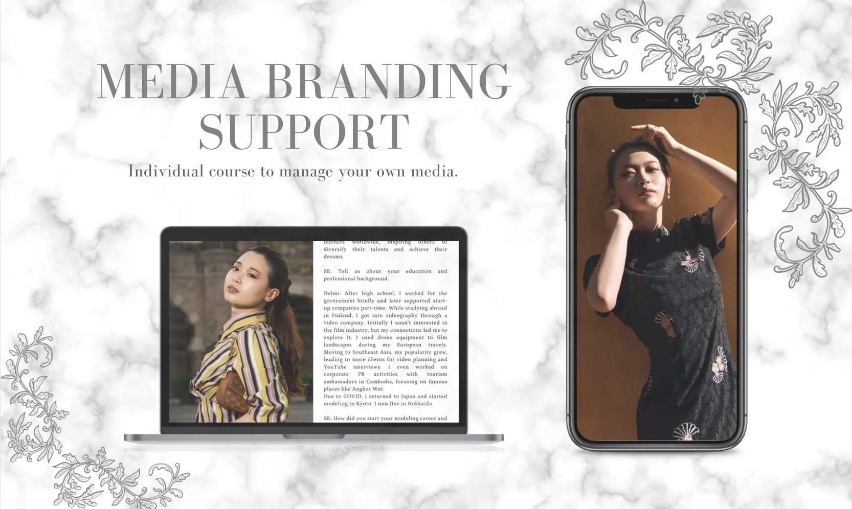 日本に緊急帰国した時に、自分のスキルをもっと高めたいと思い、【被写体】の道を歩むためにモデルスクールに週に1回、1年間ヒールウォーキングに通いました。